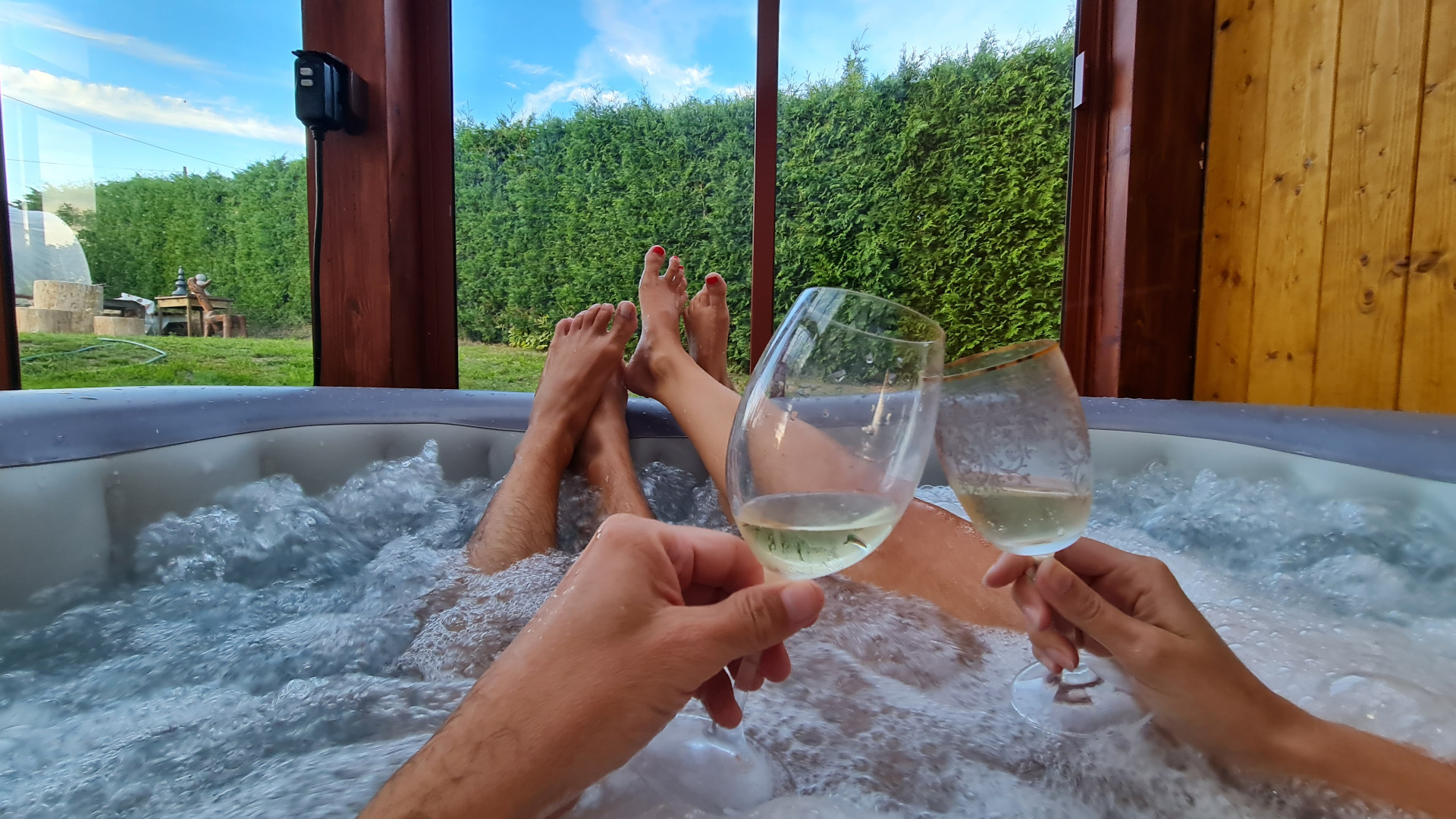 súkromnom wellness s vírivkou, vonkajšou sprchou a fínskou saunou.